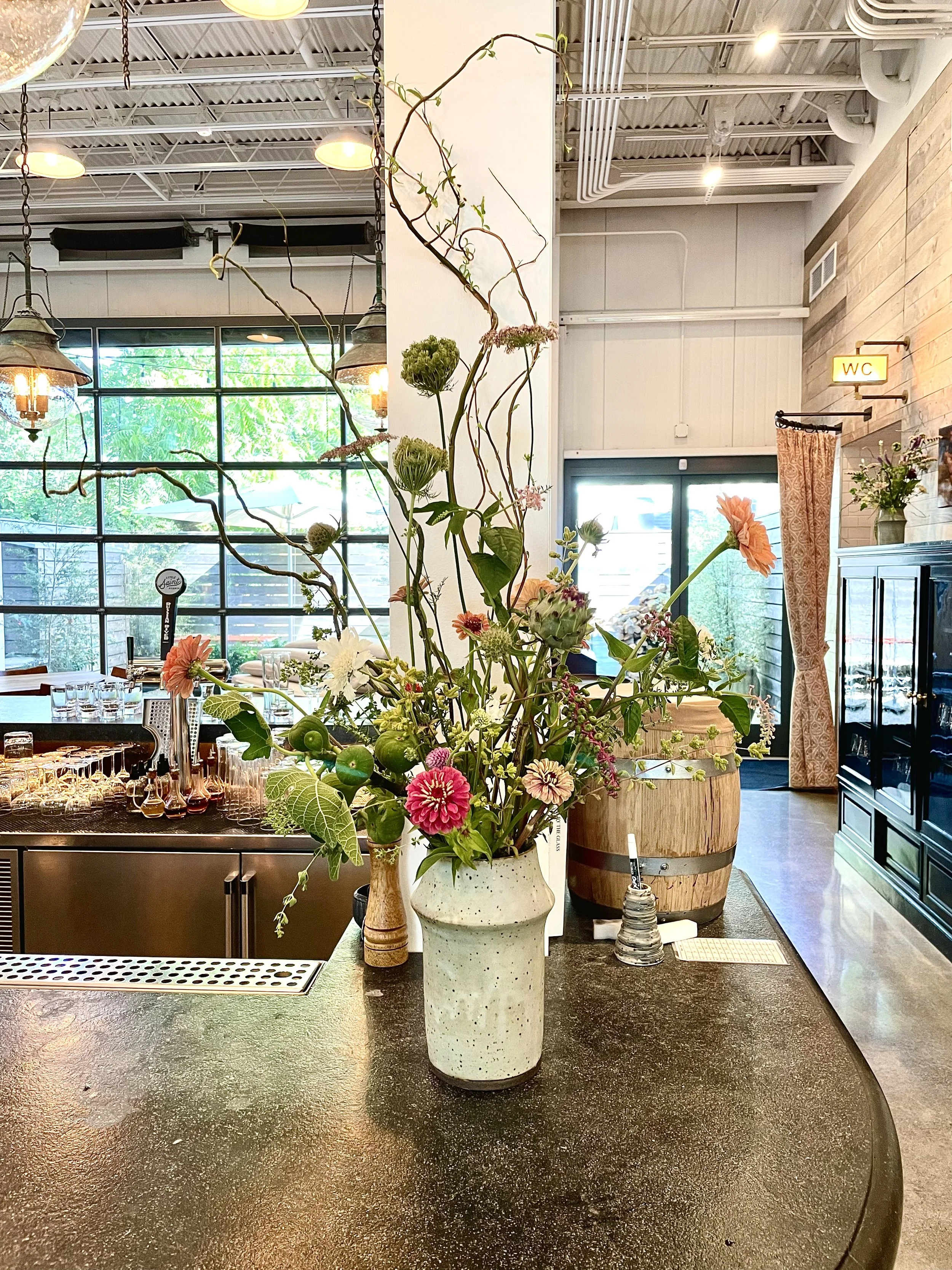 Floral decor for winery tasting rooms and restaurants, Healdsburg, CA 2022-2024