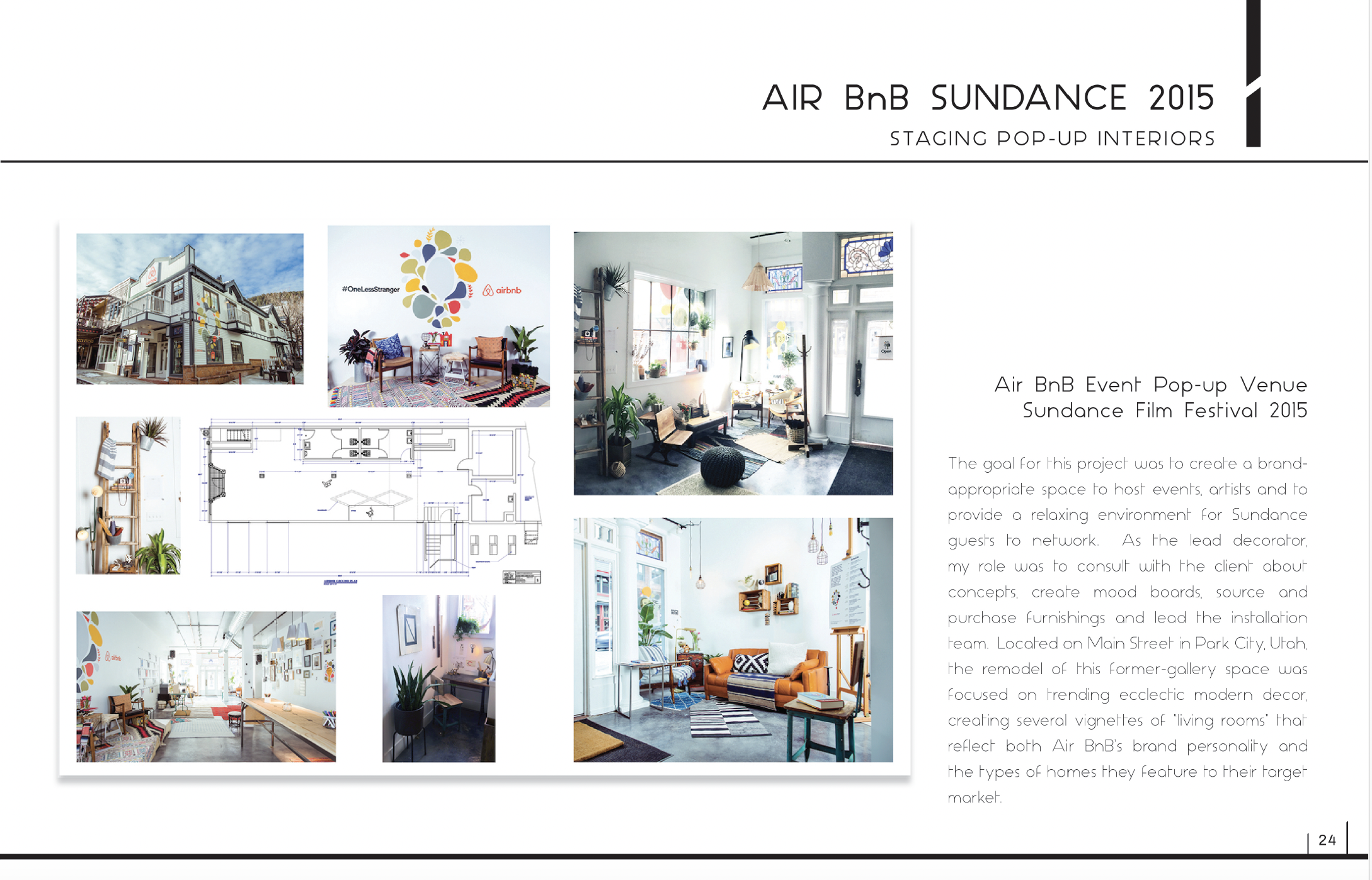 a) Demo of drywall and carpeted stairs, refinishing redwood balcony, interior and exterior paint, resurfaced 20ft. walls w. Roman Clay. b) Updates to light fixtures, merchandising & display fixtures, entry finishes. c) Brand development, signage, product curation, marketing, pop-up execution.